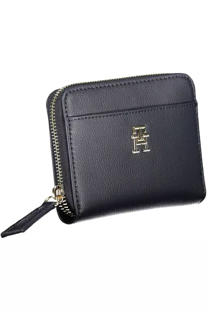 wallet, 5 internal compartments, 1 external compartment, internal spaces formed by cards, coin purse, zip closure, contrasting details, logo