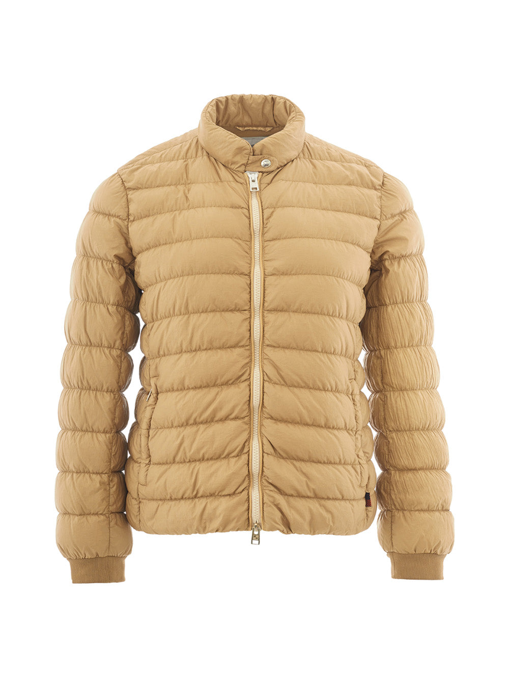 Gorgeous brand new with tags, 100% Authentic Woolrich dark beige light weight quilted jacket with front zip closure, two side pockets, cuffs, button on collar