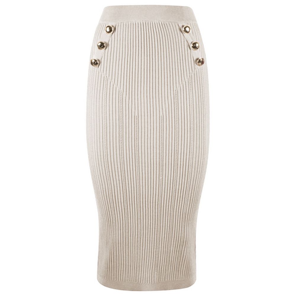 Yes Zee pencil skirt in viscose blend with decorative buttons on the front