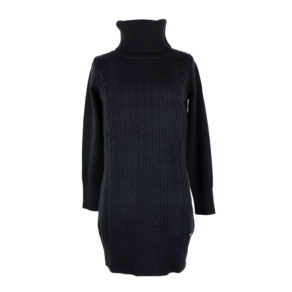 Yes Zee women’s dress in turtleneck knit, long sleeves, brand logo applied on the bottom.