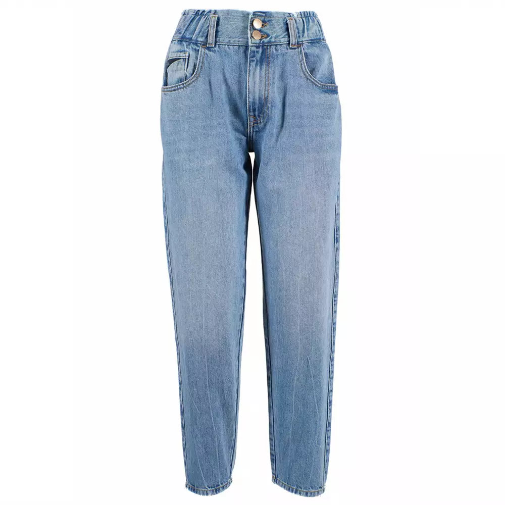 Yes Zee women’s jeans with high elasticated waist, regular fit, slightly washed out, ruined detail on the back pocket, double button closure with zip